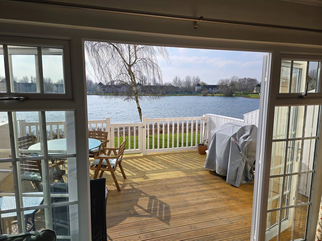 Moorhens' Rest is a modern, fully-equipped home in the heart of the Cotswolds Water Park with a large deck overlooking Windrush Lake. It is a tranquil and relaxing property, but there are also a wide variety of possible daytime activities, making it the perfect getaway, whatever type of holiday you desire. Your family/friends can lounge in the sun on the open deck and watch the sunset with a glass of prosecco, or explore the various outdoor activities within walking distance!